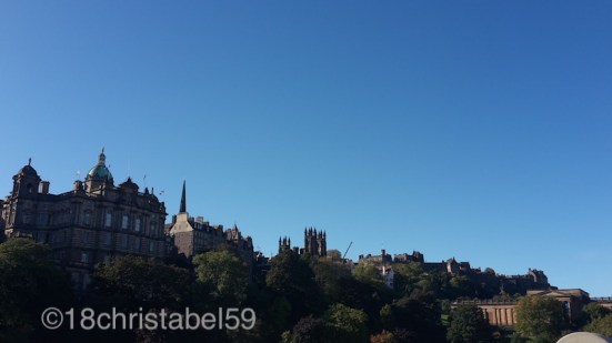 Die Waverley Bridge ist jedes Mal mein Start- und Endpunkt eines jeden Besuchs in Schottlands Hauptstadt. Auch bei meinem letzten Besuch mit meiner Kollegin, die genauso Schottland-verrückt wie ich ist. Was absolut gut ist. Wir kamen als mit dem Airbus-Shuttle (Linie A100, £7,50 Returnticket) bei strahlendem Sonnenschein und stahlblauem Himmel auf der Waverley Bridge an. Und grinsten beide wie Honigkuchenpferde, die gleich mal mit den Handys die ersten Fotos von altbekannten Fotoobjektiven machten. Ja, doppelt hält besser. Sobald wir beide ausgestiegen waren, waren wir daheim. Ein irrsinnig vertrautes Gefühl von Happiness und Angekommen (im übertragenen Sinn) stellte sich ein. Und da waren auch die 2 Stunden Flugverspätung am frühen Morgen auch glatt wieder vergessen.